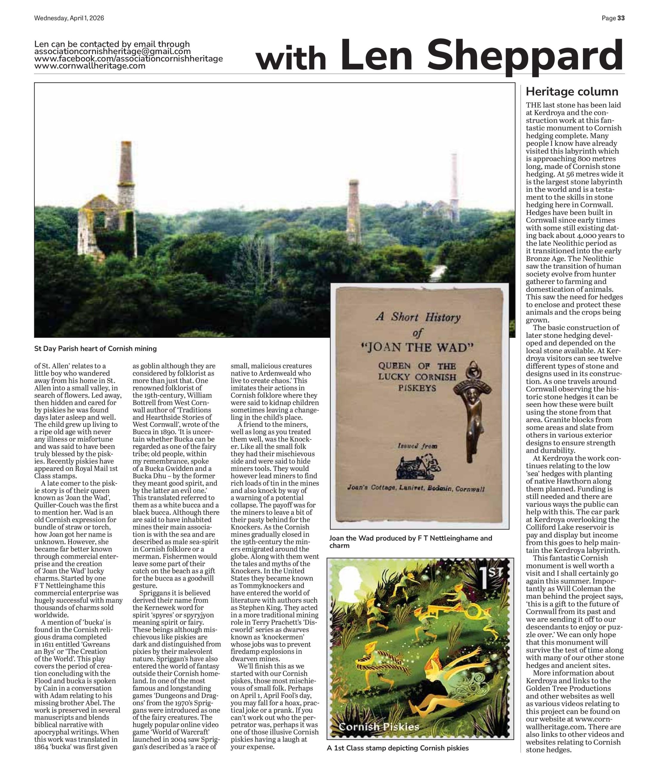 We’ll finish this as we started with our Cornish piskes, those most mischievous of small folk. Perhaps on 1st of April, April Fool’s day, you may fall for a hoax, practical joke or a prank. If you can’t work out who the perpetrator was, perhaps it was one of those illusive Cornish piskies having a laugh at your expense.