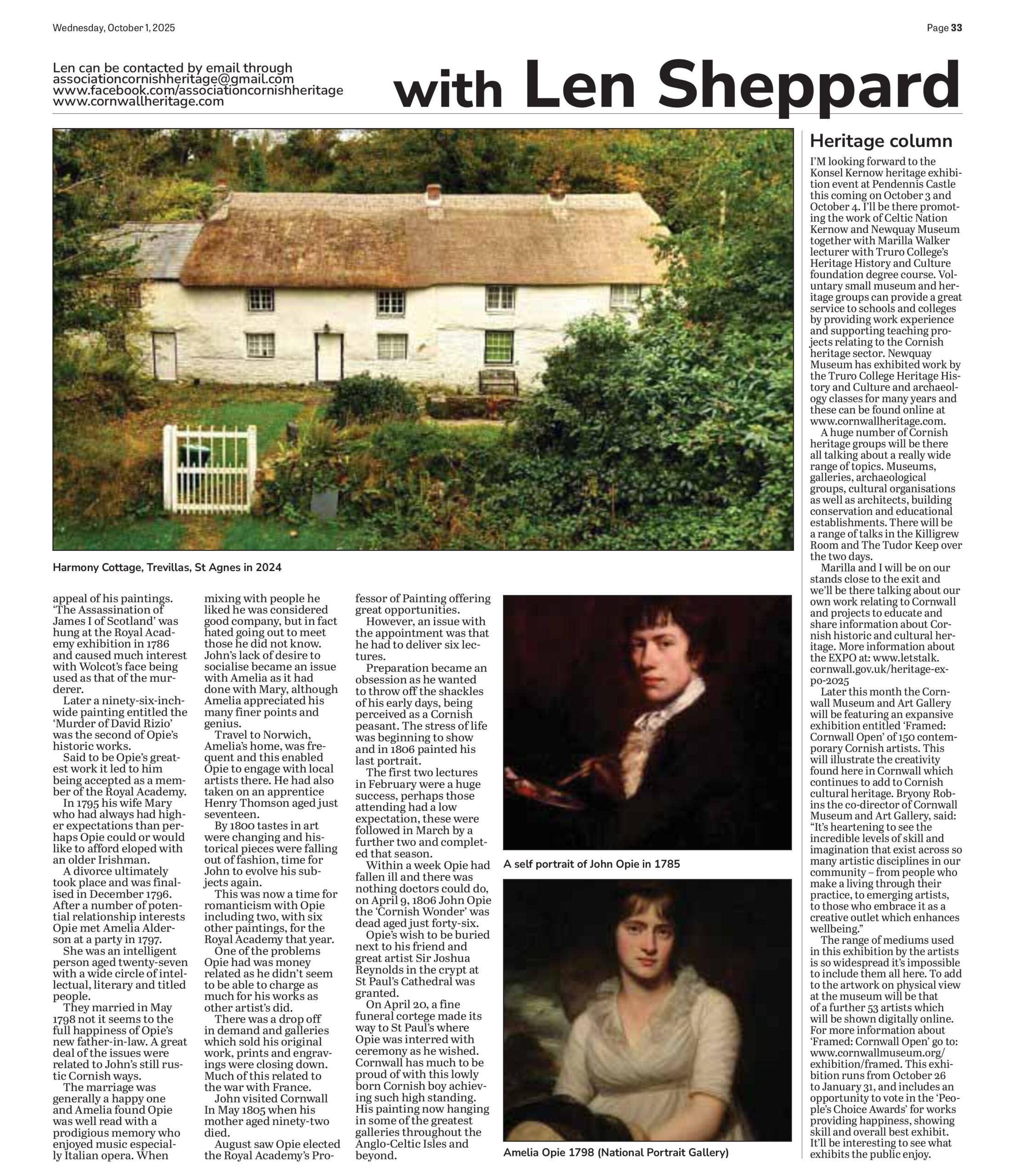 John was born in a cottage known as Blowinghouse in May 1761 in the hamlet of Trevillas, near St Agnes. He was the second son of Edward Opie and his wife Mary and one of five children including a daughter. Edward Opie was a housebuilding carpenter and through his father’s work he was introduced to people who would begin elevating him to the highest level of art and society.