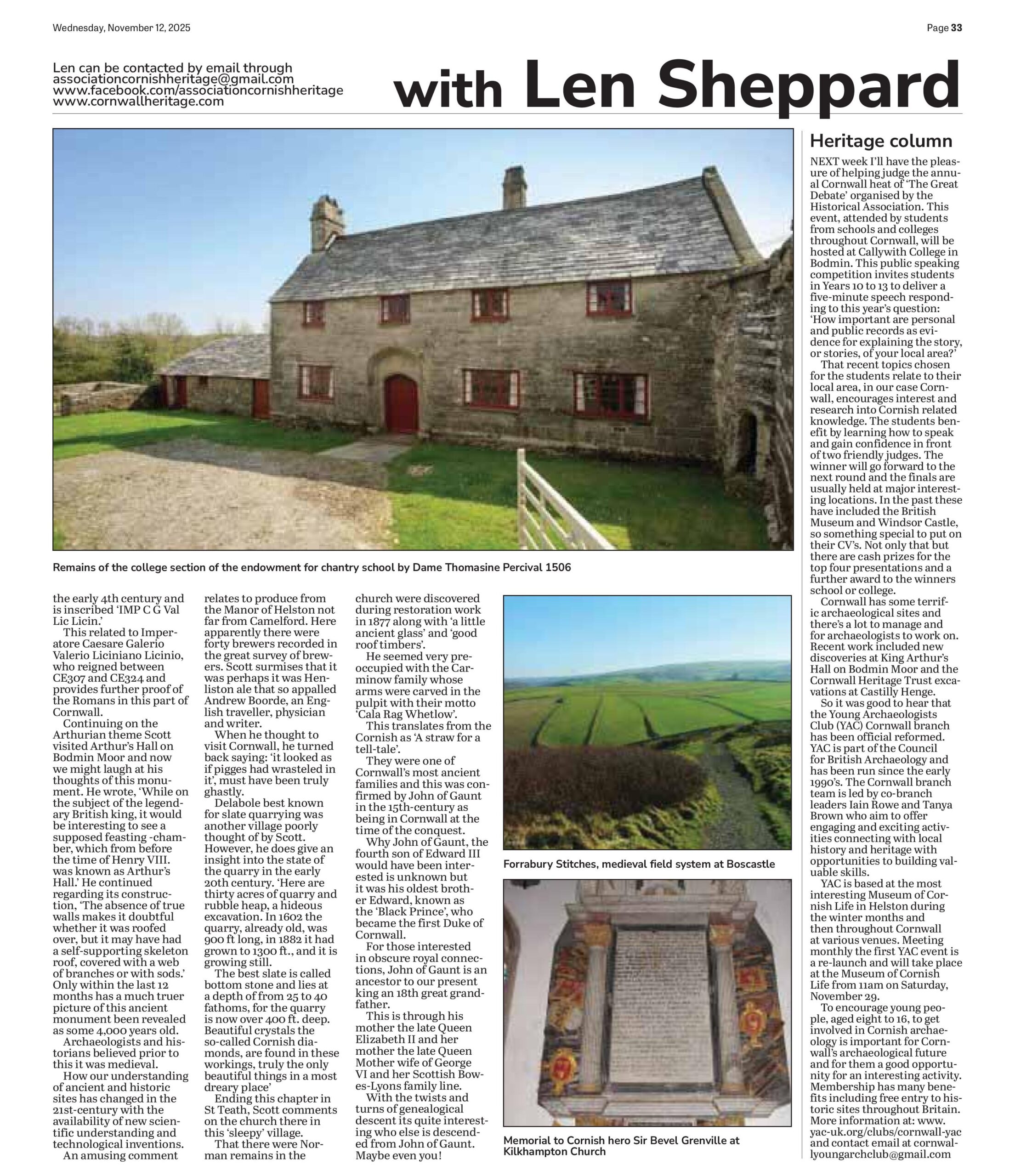 Ertach Kernow Heritage Column 12th November 2025 – Young people, Great Debate and YAC